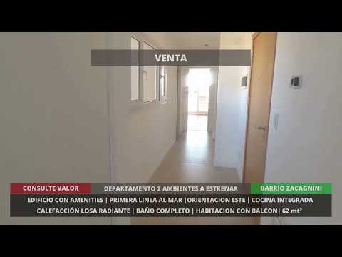 <p> A ESTRENAR, amplio 2 ambientes de 62 m², con vista de primera línea al mar. A 7 cuadras de Constitución, a 1 cuadra de Acevedo.<br><br>- Balcón saliente al frente.<br>- Cocina integrada con ventilación natural.<br>- Calefacción por losa radiante.<br>- Baño completo con ducha.<br>- Dormitorio con placar empotrado y balcón saliente con vista al contra frente. <br><br>* Cocheras disponibles en el edificio.<br><br>* Abundante luminosidad, ventilación cruzada. Portero visor. Aberturas de doble vidriado hermético (DVH) de excelente calidad, 3 unidades por piso.</p><p>Acepta permuta de propiedad en Mar del Plata<br><br>Espacios de uso Común: Quincho con doble terraza, Solárium con vista panorámica e Hidromasaje.<br><br>